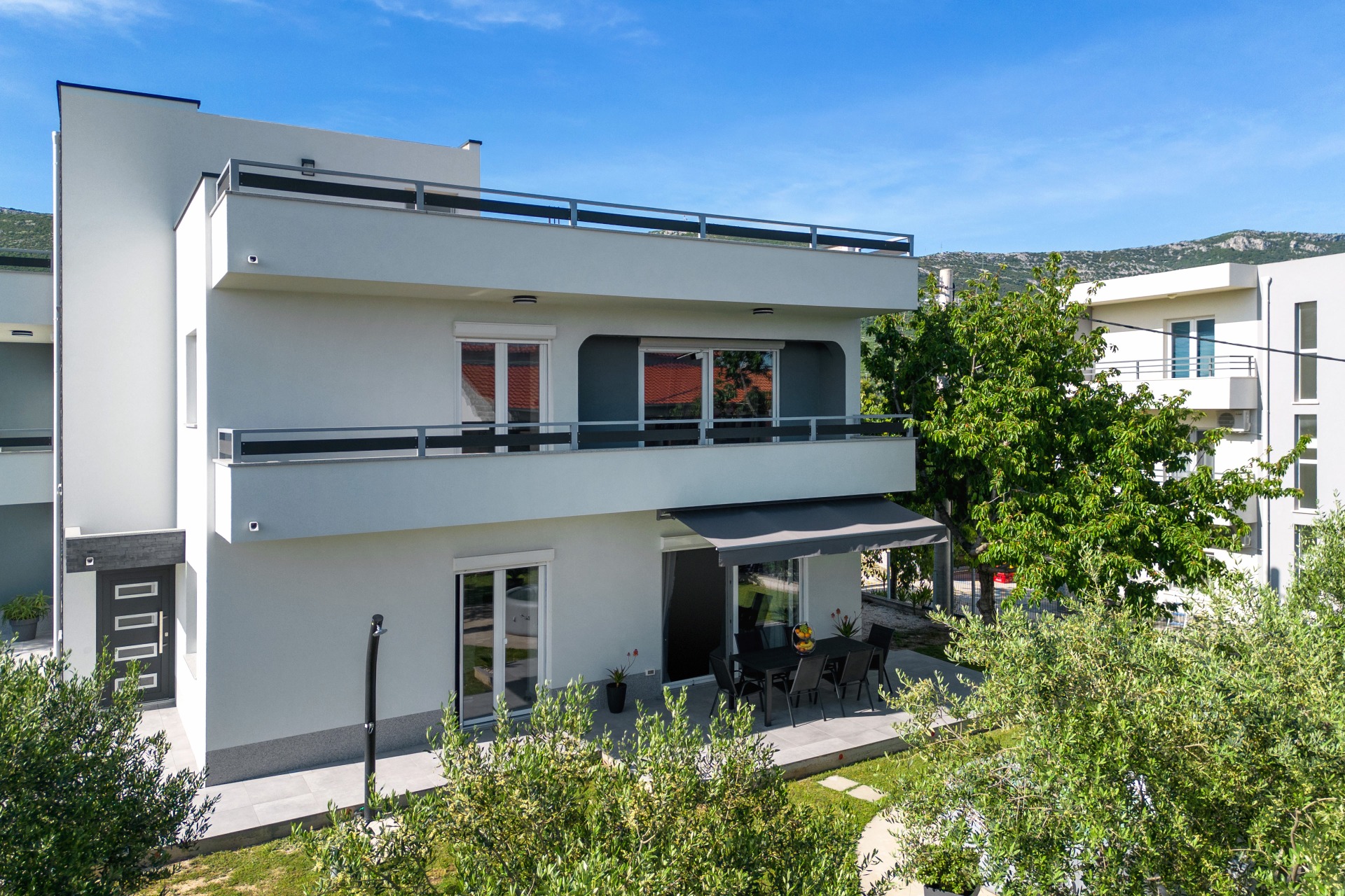 In the living area, the large window gives a beautiful view of the garden. Relax in stylish ambience, eat together in the kitchen or outside, and make yourself comfortable on the sofa after an eventful day, perhaps with a good movie. Vacation relaxation sets in at the latest while you enjoy the sun in the outdoor area and leave the hustle and bustle of everyday life behind, several beautiful places invite you to relax to the fullest in the garden. Refresh yourself to your heart's content in the whirlpool and end the day with a delicious meal outside on a balmy summer evening. Head to the sea and enjoy the clear waters at the pebble beach. Take a trip to Trogir, walk across the bridge to the old town and explore the monuments that bear witness to the rich past of this impressive city, including the Cipiko Palace, the Church of Sveti Petar and the buildings on John Paul II Square.